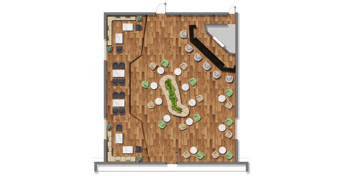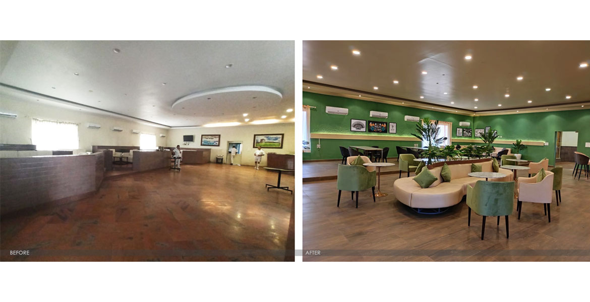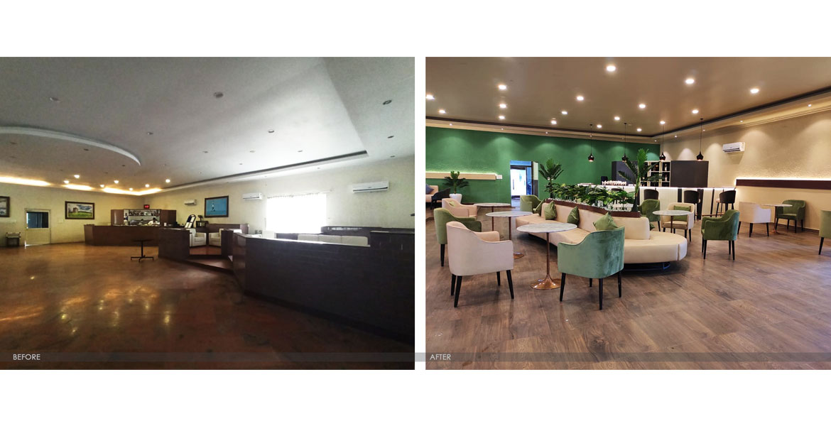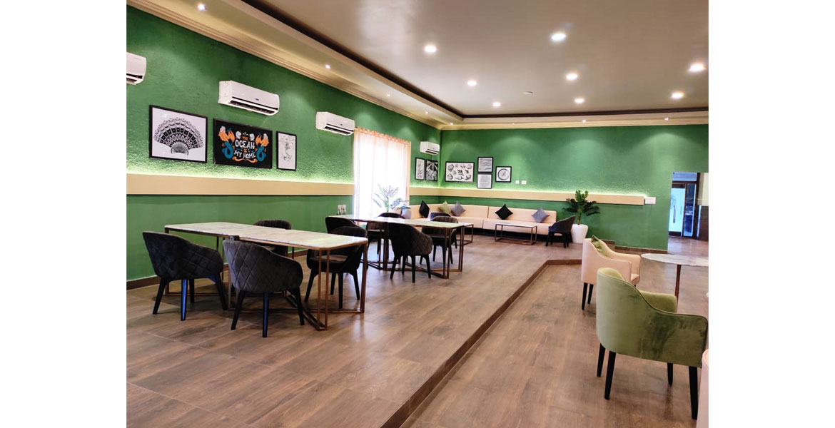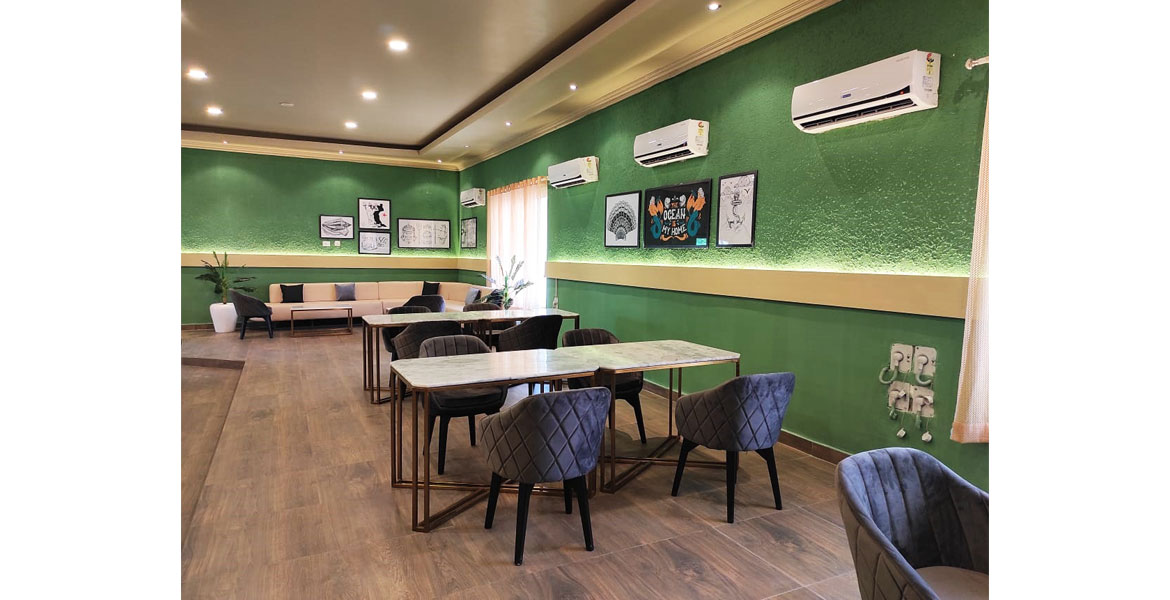 This exotic marine-life symbolic restaurant draws inspiration from the God of Sea and has a cosy vibe that pairs naturally with an island culture. While the sea-green colour scheme brings in a breath of the ocean, the artistically graffitied façade with marine plants, conch, seashells highlight the undercover glamour of an island. The painting collection also reflect the scenic beauty of the sea and ships. The special feature for us was the central seating – with fluid curves, it is inspired from dispersed islands in the sea.