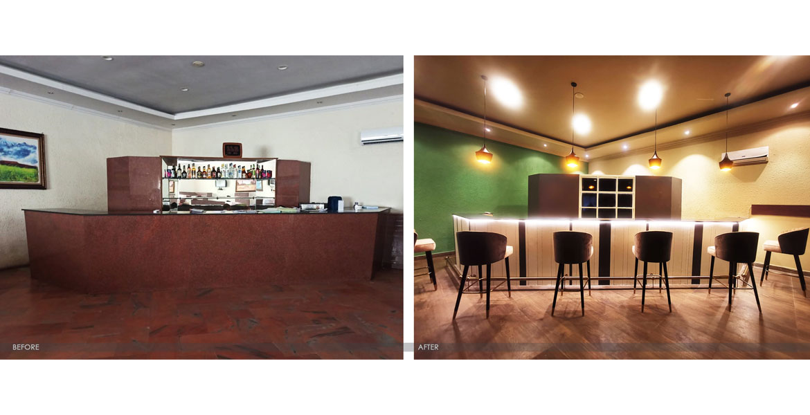 The vision for this design was to let the visitors gather, socialize, relax after a long day of drills and activities while reminiscing about being on an inhabited island. The soft lighting effects at the back of the bar, set an appropriate de-stressing ambience.